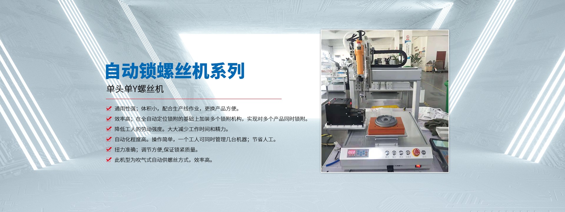 蘇州拓航機械設備有限公司成立于2016年,是一家集研發(fā)、制造、銷售及技術服務于一體的自動化設備生產(chǎn)廠家,主營產(chǎn)品有自動螺絲機、自動焊錫機、自動點膠機、自動灌膠機 脈沖熱壓機,及各類型的非標自動化設備。